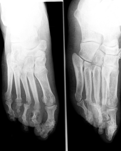 | RX pie diabetico. Degeneracion ósea en ante pie inferior |
